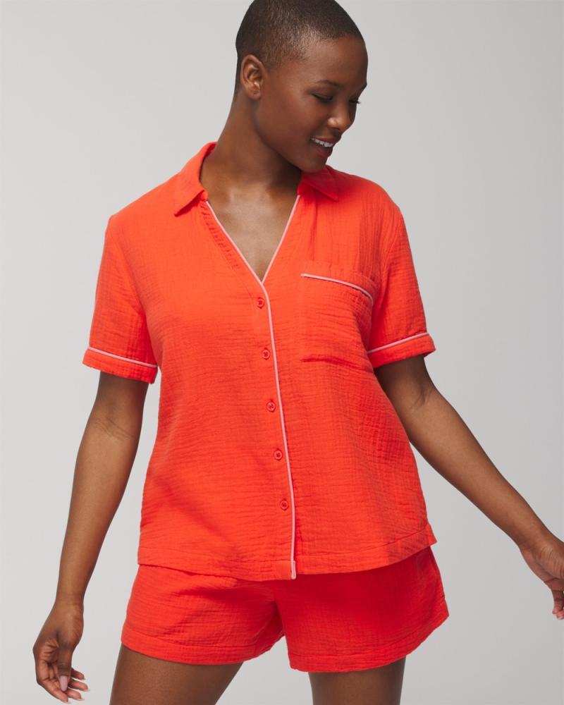Kurzärmliges Pyjamaoberteil Aus Baumwollgaze Island Guava | Soma Damen Passende Sets & Einzelteile
