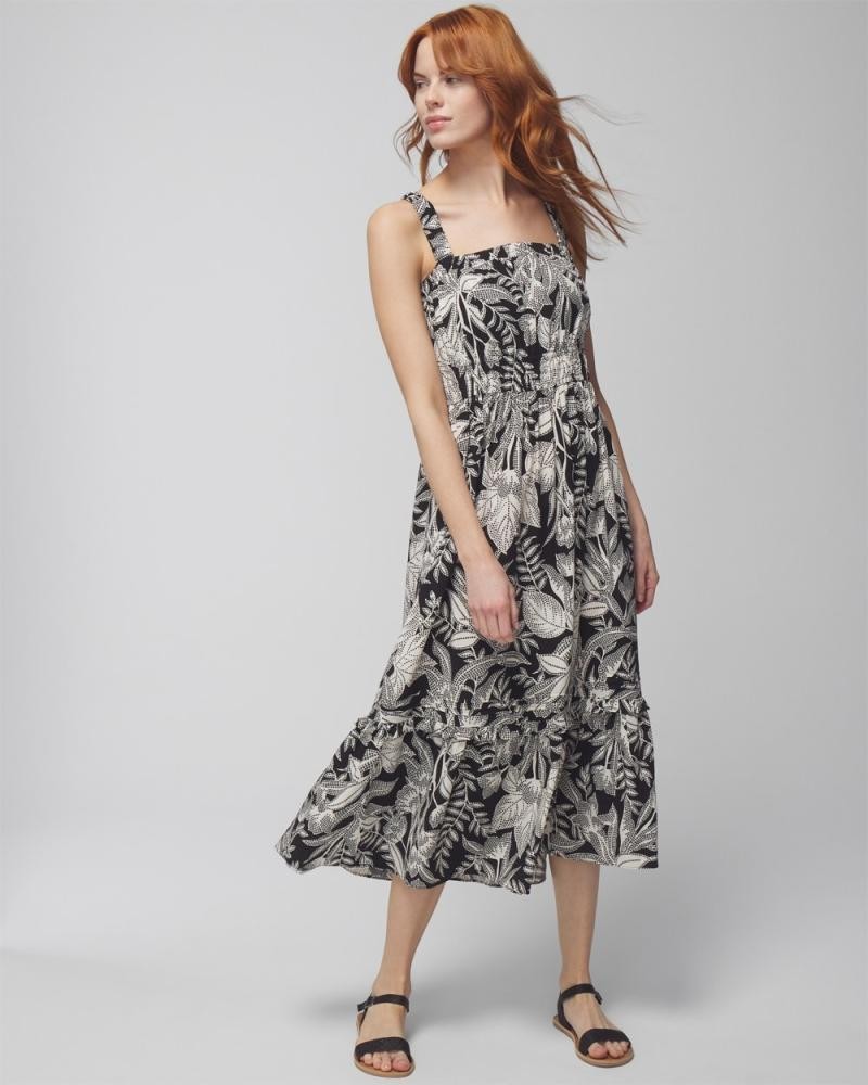 Midi-BH-Kleid Challis Aus Viskose Mit Palmenmuster Schwarz – Soma Damen