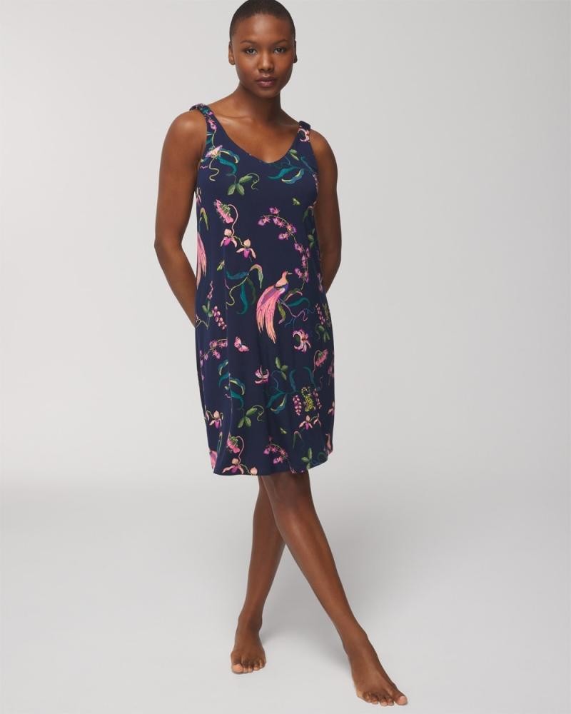 Cool Nights Shirred Strap Chemise Mønstrede Palmer Marineblå | Dame Soma Matchende Sæt & Separater