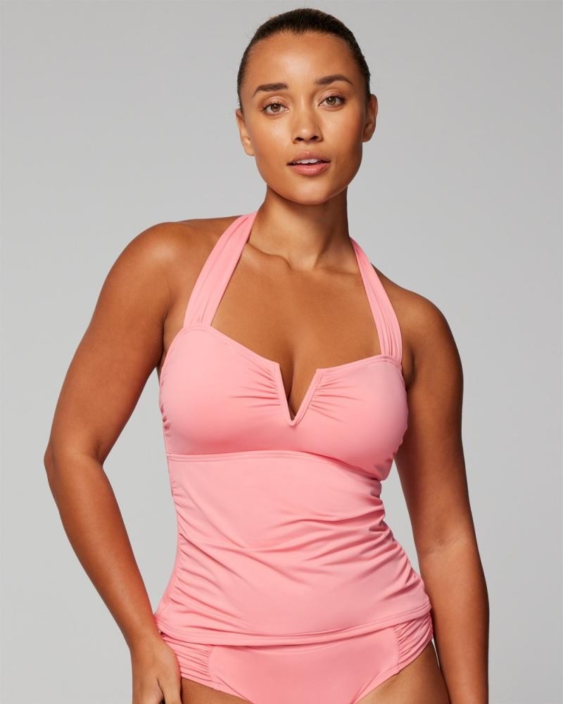 Svømning, solbadning og sandstrande – denne tankini med v-bøjle og halterneck er klar til det hele. Hvis du leder efter lidt mere mavedækning, vil du elske denne model. Den flatterende v-bøjleudskæring og halterneckstropper sikrer en sikker pasform på toppen. Miks og match dig til det perfekte badetøj med vores udvalg af matchende Soma® svømmetrusser i alsidige ensfarvede farver og sjove print.