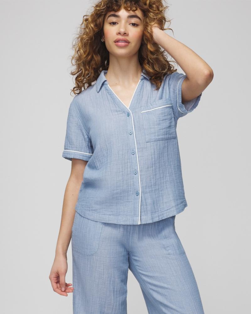 코튼 거즈 반팔 노치 칼라 크로스다이 메이크 미 블러쉬 | 여성 소마 매칭 세트 & 세퍼레이트