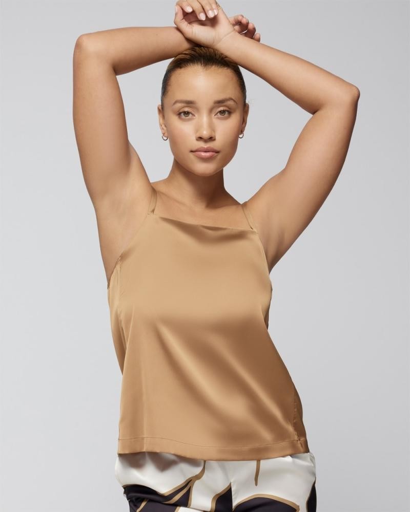 이보다 더 세련된 잠자리는 없을 거예요. 아름다운 새틴 소재로 제작된 이 스퀘어넥 캐미솔로 꿈결 같은 밤을 선사하세요. 잠옷 스타일을 한층 더 돋보이게 하고 싶을 때 제격입니다. 신축성 있는 신축성 있는 뒷면과 조절 가능한 스트랩으로 세심하게 디자인되어 딱 맞는 핏을 연출할 수 있습니다. 완벽한 편안함과 스타일로 저녁 시간을 만끽하세요.