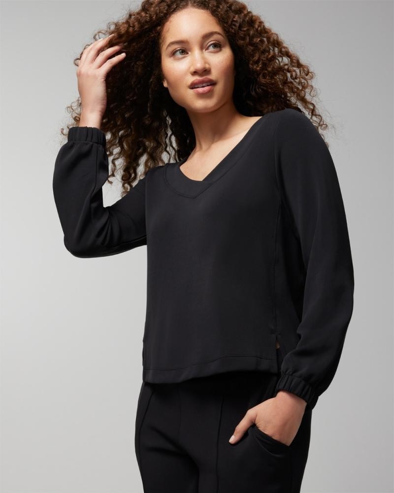 De perfecte herfstlaag wacht erop om aan je garderobe toegevoegd te worden. Onze Luxe Modal Sweatshirt is gemaakt van zachte suède stof die zorgt voor een behaaglijk gevoel en heeft verfijnde details zoals geplooide manchetten die een balans creëren tussen stijlvol en casual. Combineer hem met een legging of een pantalon voor een ultraveelzijdige laag.