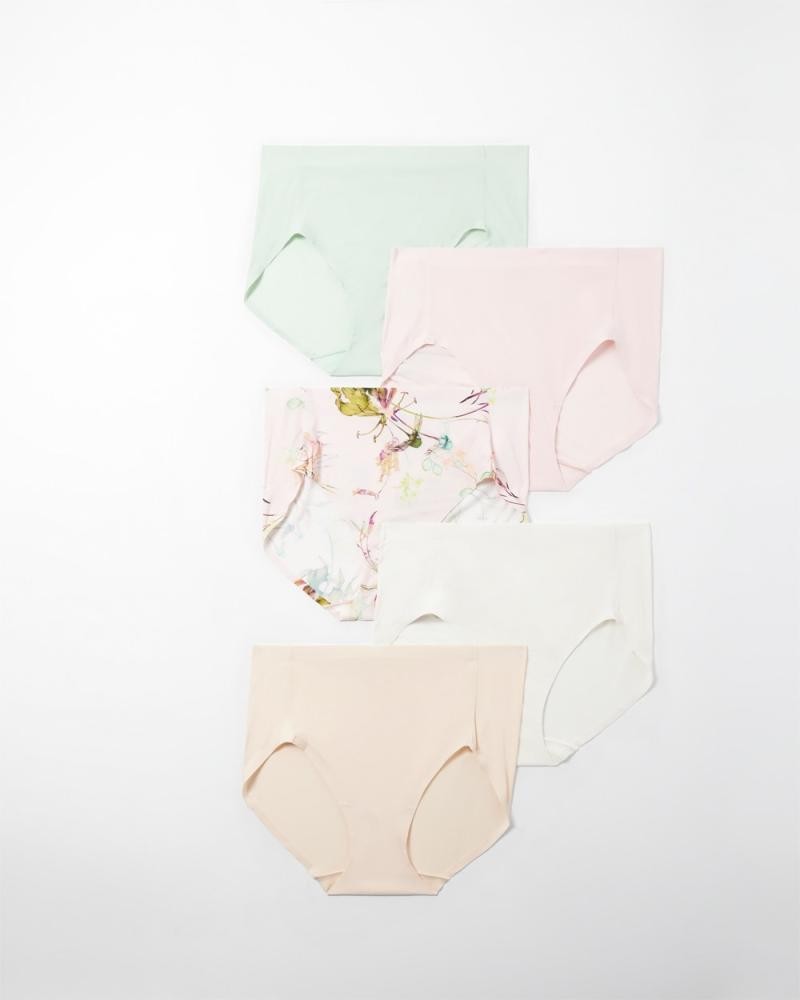 Det är den perfekta kombinationen av mjuk och modern stil. Enbliss® Soft Stretch moderna trosor ger dig en andra hudkänsla med sammanfogade kanter för en slät och elegant form under kläderna. Den moderna trosdesignen ser bra ut och känns fantastisk, tillverkad av ett otroligt mjukt tyg som är töjbart på fyra sätt, vilket ger dig ultimat komfort. Fräscha upp din översta låda med detta fempack!